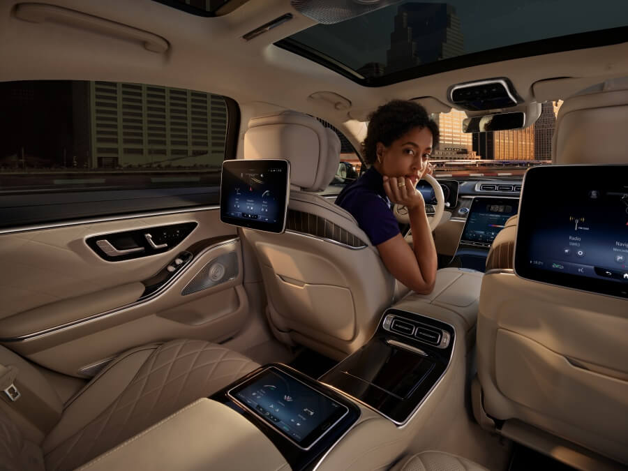- Debiut drugiej generacji systemu MBUX. System zastosowany został w nawet 5 ekranach z personalizacją dla każdego z pasażerów. Nowy trójwymiarowy wyświetlacz kierowcy, dzięki śledzeniu wzroku, po raz pierwszy oferuje przestrzenną percepcję danych z rzeczywistym efektem 3D. Dodatkowo po raz pierwszy zastosowano wyjątkowo duży wyświetlacz head-up, korzystający z funkcji rozszerzonej rzeczywistości.
