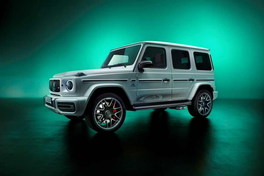 Model specjalny Mercedes-AMG G63 „Edition 55” dostępny jest w dwóch wariantach kolorystycznych: metalicznej czerni obsydianu lub bieli opalitu bright z palety G Manufaktur. Niezależnie od wybranego koloru nadwozia, model posiada jubileuszowe oklejenie „Edition 55”, pakiet stylistyczny AMG Night oraz Night 2 oraz dedykowane, kute obręcze kół AMG. Wyjątkowego charakteru nadają mu takie detale jak np. korek wlewu paliwa wykonany w srebrnych chromie z wytłoczonym AMG.