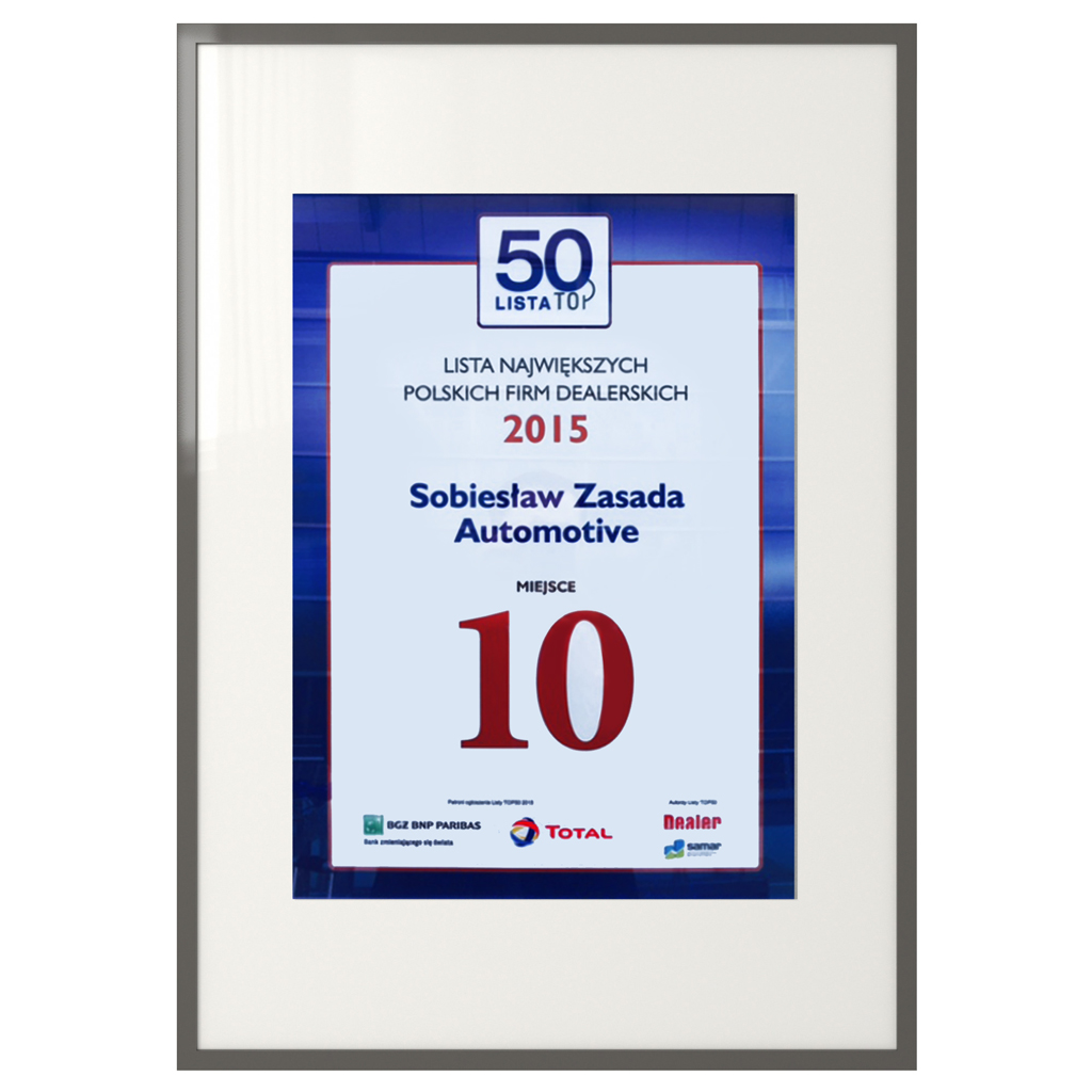 Spółki dealerskie Grupy Zasada S.A. po raz kolejny znalazły się w czołówce listy TOP 50 Największych Dealerów w Polsce. Uplasowaliśmy się na wysokim 10 miejscu ze sprzedażą 5 299 samochodów w 2015 roku. Znaczny udział w tym przypadł Sobiesław Zasada Automotive. Za to zaś pragniemy z całego serca podziękować Państwu!