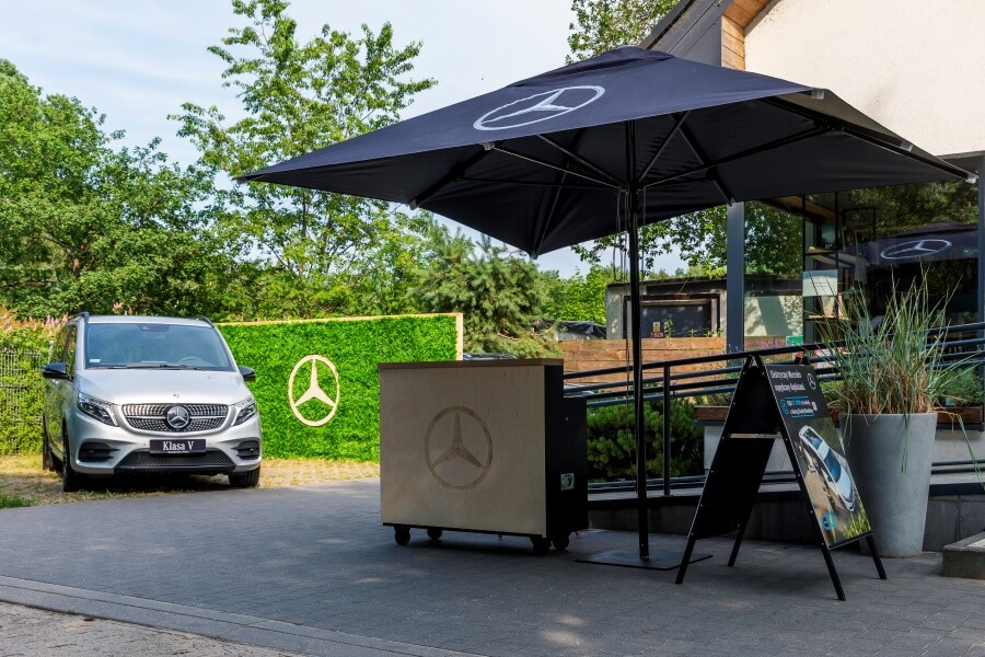 Na terenie kempingu Mercedes-Benz stworzył cztery strefy – każda ma inny charakter i oferuje dla swoich gości innego rodzaju atrakcje. Pierwsza i najważniejsza znajduje się tuż przy wjeździe – jest to Strefa EXPO, czyli ekspozycja auta wraz z recepcją i obsługą. Tu można dokładnie obejrzeć wystawione vany Mercedes-Benz i uzyskać o nich informacje. W kolejnej strefie – Jazd Testowych – zainteresowani mogą zweryfikować je w praktyce, doświadczając podczas jazdy pełni możliwości największego osobowego vana z napędem elektrycznym.
