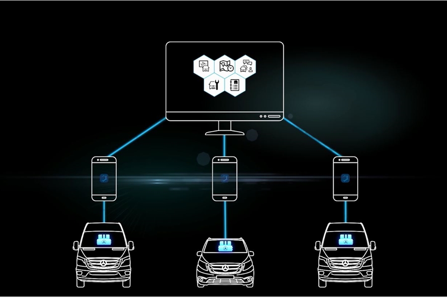 Dostęp do nowego świata łączności stał się teraz bardzo prosty i przystępny. Po podłączeniu Adaptera w pojeździe, w gnieździe OBD II, urządzenie łączy się ze smartfonem kierowcy, za pośrednictwem którego przesyła informacje do menedżera floty. Dzięki tej internetowej usłudze menedżer floty jest w kontakcie ze wszystkimi pojazdami i kierowcami we flocie. Adapter Mercedes PRO jest początkowo dostępny dla Vito i Sprintera. Za pomocą Adaptera Mercedes PRO można zarządzać flotą przez Internet oraz praktycznie w czasie rzeczywistym odczytywać informacje o pojeździe: takie jak jego lokalizacja, poziom paliwa w baku czy czas pozostały do przeglądu.