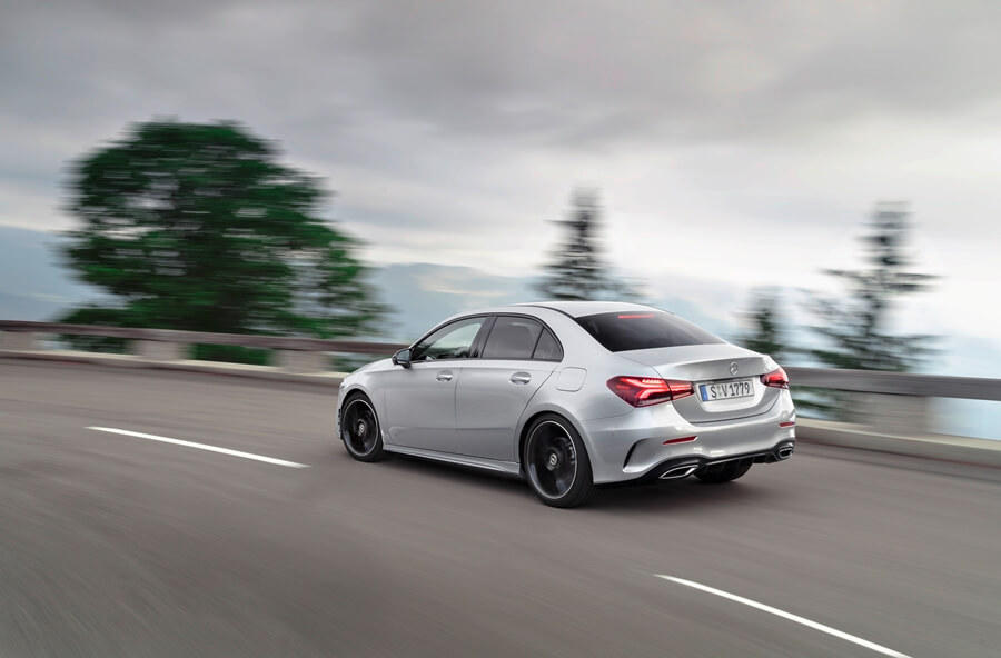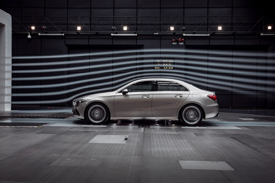 Nowa Klasa A Limuzyna wykorzystuje sprzyjające warunki, jakie zapewnia jej wydłużona tylna bryła i deklasuje nawet wzorową pod względem aerodynamiki Klasę A z nadwoziem hatchback (Cd od 0,25). Z wynikiem Cd = 0,22 nowy model stoi na równi ze światowym rekordzistą w tym względzie, modelem CLA Coupé. Za sprawą powierzchni czołowej o wartości 2,19 m², czyli mniejszej niż w CLA, nowa Klasa A Limuzyna charakteryzuje się najmniejszym oporem aerodynamicznym spośród wszystkich seryjnych aut świata.