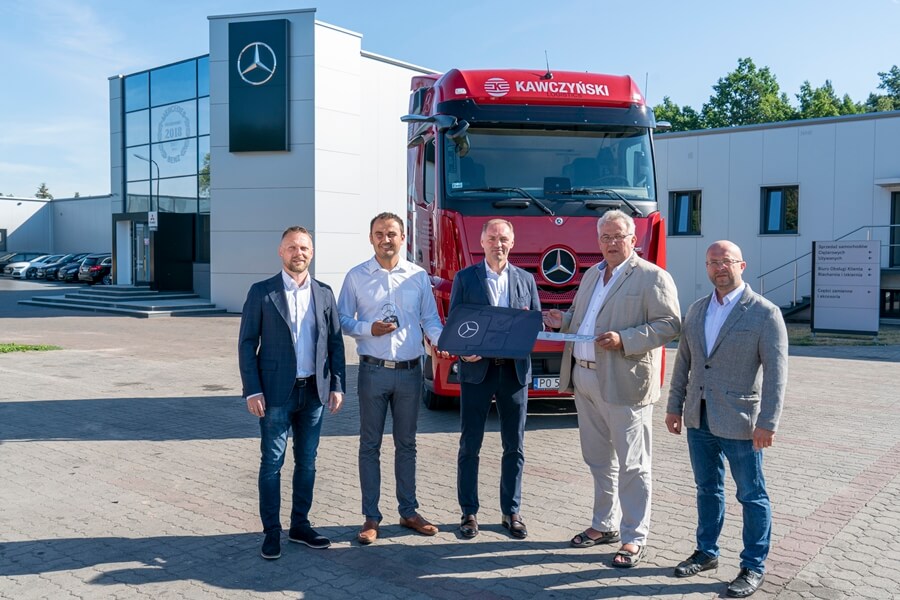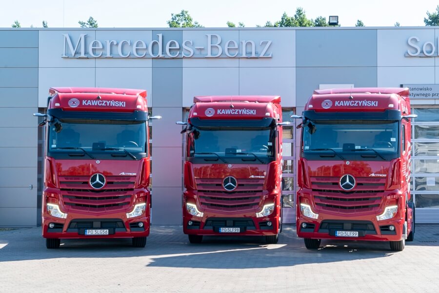 Firma Kawczyński Logistics odebrała pierwszą partię polakierowanych na firmową czerwień 20 Nowych Actrosów 1845 LS z dwoma rodzajami kabin – GigaSpace i BigSpace. Łącznie w ciągu 2019 i 2020 roku firma Włodzimierza i Stanisława Kawczyńskich odbierze łącznie 100 Nowych Actrosów.