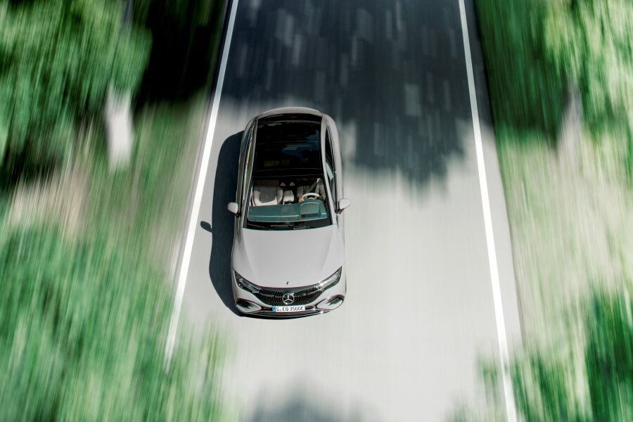 Od ponad trzech dekad aerodynamicy Mercedes-Benz osiągają w swojej pracy najlepsze wyniki. Obecnie światowymi rekordzistami są EQS (typoszereg V 297) ze współczynnikiem oporu powietrza Cd od 0,20 oraz Klasy A Limuzyna (V 177) i Klasa S (V 223) – tu Cd wynosi od 0,22. Decydujące dla uzyskania takich rezultatów są specjalne narzędzia symulacyjne i tunel aeroakustyczny Mercedes-Benz, oddany do użytku w 2013 r. Również EQE był tam dopracowywany. To drugi po EQS-ie samochód Mercedes-EQ zbudowany na modułowej architekturze dla aut elektrycznych klasy wyższej i luksusowej (EVA2). W związku z tym najnowsza elektryczna limuzyna dzieli ze swoim starszym bratem wiele rozwiązań z dziedziny aerodynamiki – i korzysta z jego osiągnięć. Charakterystyczny kształt nadwozia z łukowatą linią dachu i liczne zabiegi optymalizacyjne, w tym gładkie podwozie oraz przeważnie zamknięta osłona chłodnicy, zapewniają nowemu modelowi bardzo dobre współczynniki Cd. Z uwagi na krótsze zwisy i standardowe stalowe zawieszenie jego pozycja „startowa”