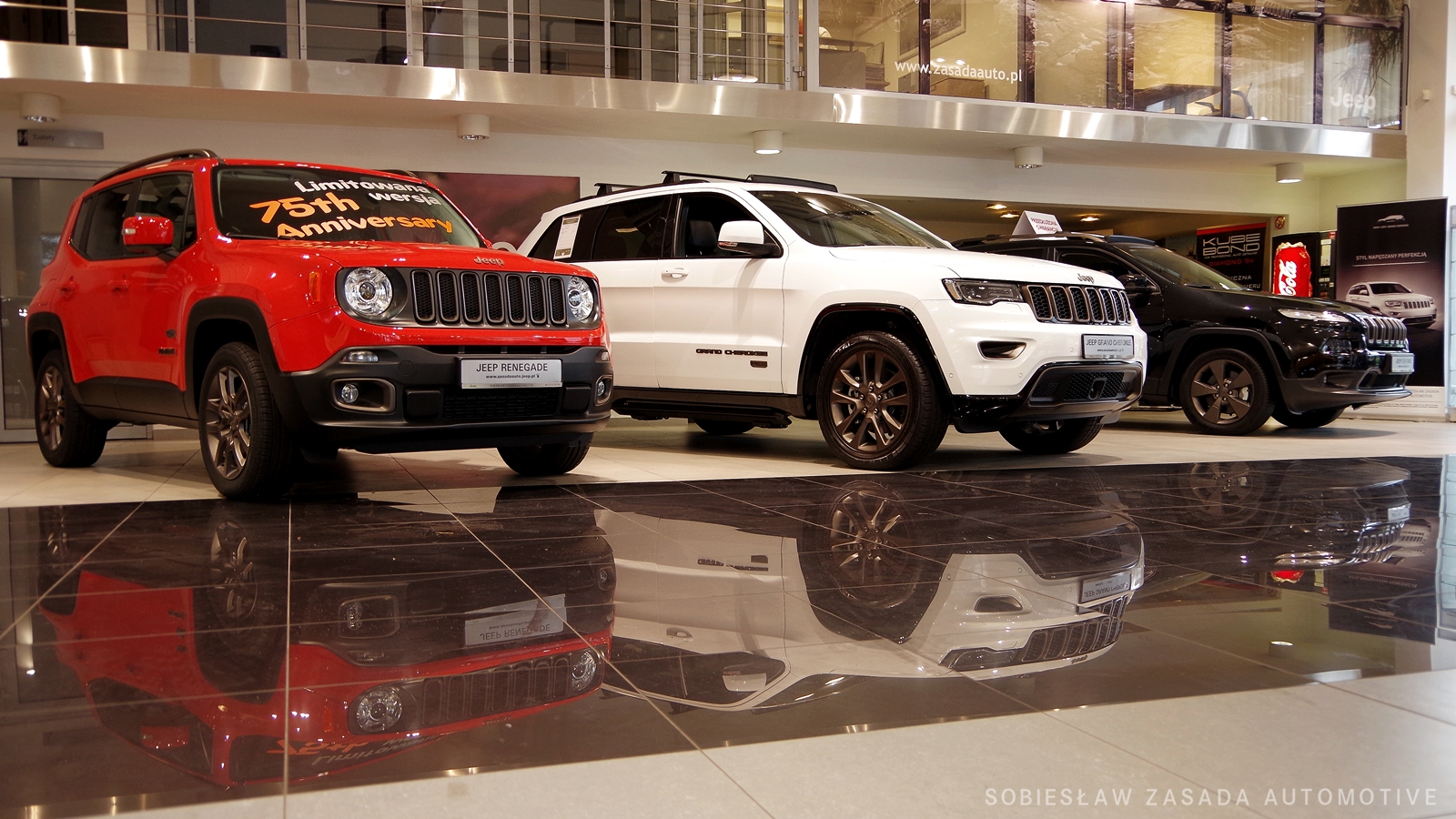 Z okazji 75 – lecia marki Jeep na początku 2016 r. na rynku pojawiła się specjalna seria „75th Anniversary”, dostępna dla każdego modelu z gamy. Niebanalne rozwiązania stylistyczne wraz z atrybutami godnymi jubileuszowej serii specjalnej przekonały sporą liczbę nabywców do skorzystania z oferty na 75 – lecie legendarnego producenta wyjątkowych aut terenowych. W salonach Sobiesław Zasada Automotive mają Państwo teraz ostatnią szansę, by nabyć wybrany model Jeep w specjalnej serii seria „75th Anniversary”.