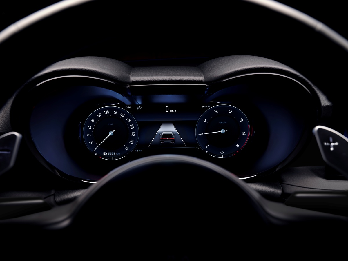 Do najbardziej charakterystycznych elementów wnętrza najnowszego SUVa Alfa Romeo należą "teleskopowa" tablica zegarów oraz kompaktowa, 3-ramienna kierownica o sportowym kształcie, którą zdobią ekskluzywne, aluminiowe łopatki do zmiany biegów. W tunelu centralnym znajduje się zasadniczy element wyposażenia Alfy Romeo- nowy selektor trybu jazdy D.N.A.