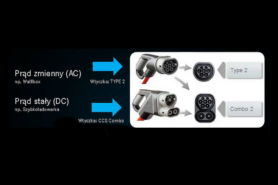Czas ładowania samochodów elektrycznych oraz hybryd Plug-In zależy od typu użytej ładowarki oraz rodzaju prądu. (Stały/Zmienny)