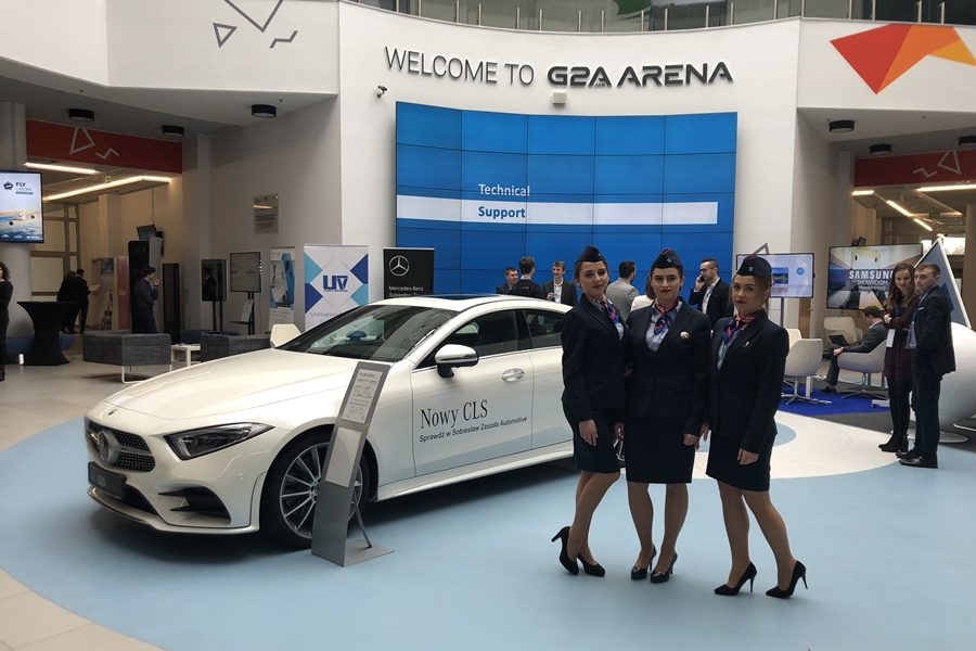 Mercedes-Benz CLS zaprezentował się najpierw szerokiej publiczności w hali wystawienniczej G2A ARENA w Jasionce, gdzie odbył się kongres branży lotniczej. W czasie kongresu Fly&More przeprowadzono panel dyskusyjny, na temat wpływu Brexitu na sytuację branży lotniczej w Polsce.