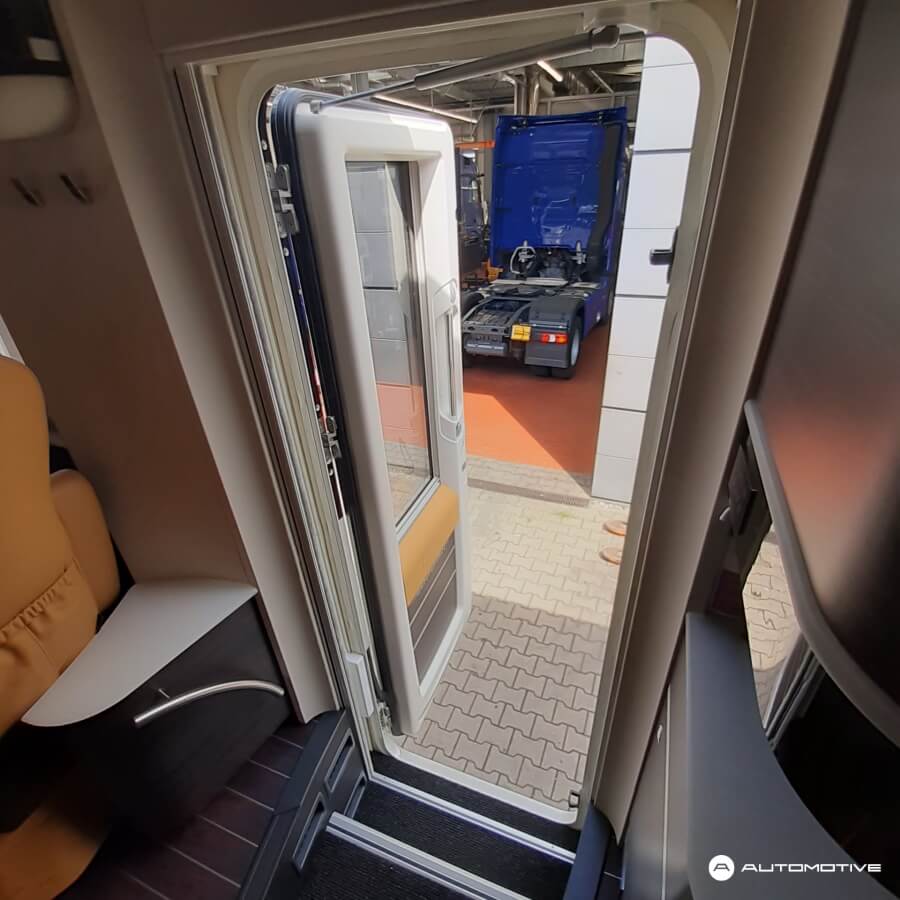 Pomysł na powiększenie powierzchni mieszkalnej został zaczerpnięty z wielkich amerykańskich kamperów - fragmenty zabudowy wysuwają się na bok za pomocą silnika elektrycznego, aby jeszcze bardziej zwiększyć wnętrze. Do części mieszkalnej możemy dostać się dzięki osobnemu wejściu, bez konieczności przechodzenia przez kabinę.